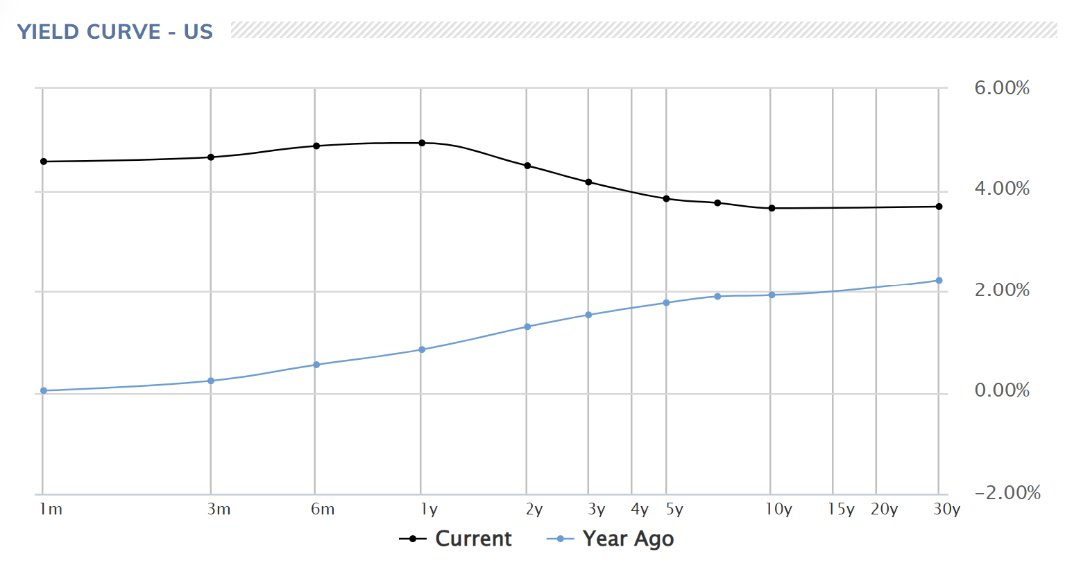 Figure 2: U.S. Yield Curve Current vs Year-Ago (source: marketwatch.com)